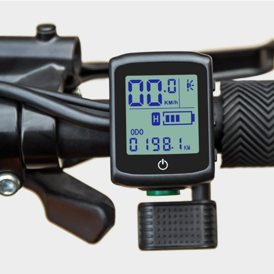 The integrated handlebar display provides real-time metrics like speed, distance and time to monitor your ride.